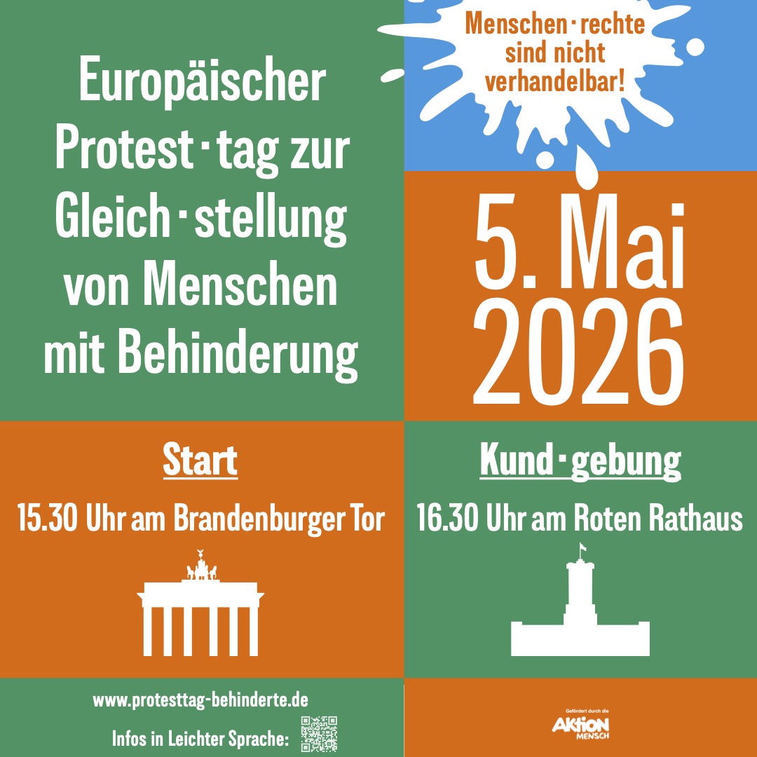 Am 5. Mai 2026 findet der Europäische Protesttag zur Gleichstellung von Menschen mit Behinderungen statt. Der SoVD Berlin-Brandenburg ist dabei: Gegen Diskriminierung und Ausgrenzung!